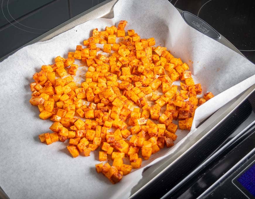 I like this hands-off approach to the potatoes and it’s perfect for lazy weekend mornings, but you are welcome to cook the potatoes with your preferred method.