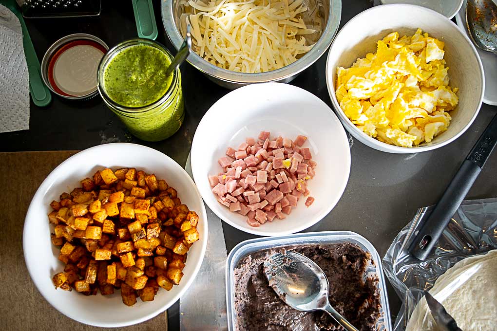 I also added some diced ham to these burritos, but feel free to creative with the fixings for your burrito masterpiece!