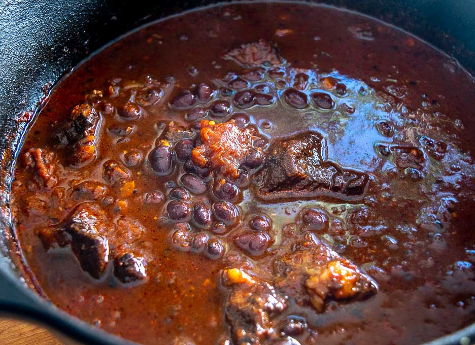 You can also adjust the consistency of the Chili con Carne at this point. So far I’ve used 5 cups stock total (4 cups were added to the pot, a single cup was added to the chile puree) and I was happy with the consistency.