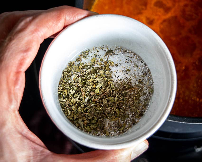 Take a final taste for seasoning. I added another generous pinch of salt, but keep in mind that the exact salt level will depend on which stock you use.