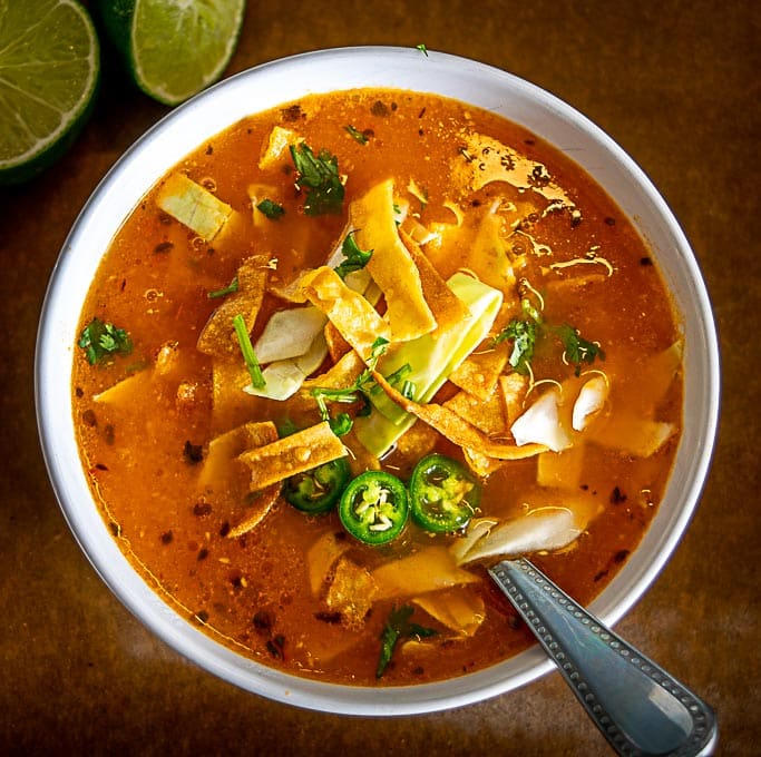 Feel free to customize the final garnishes to your liking, but no skimping on the crispy tortilla strips!