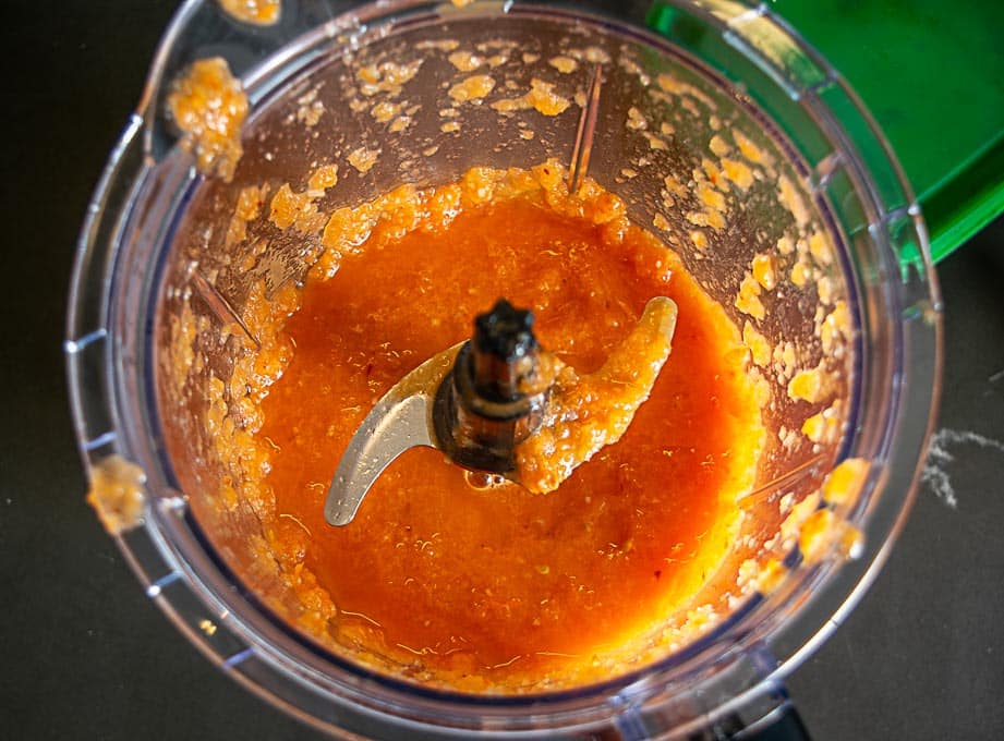 Once the onion is starting to brown, add this mixture to a blender along with the roasted tomatoes and a single chipotle in adobo.