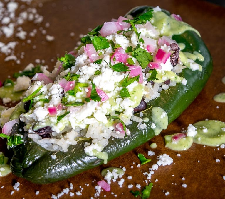 Roasted Poblanos have so much flavor that you can easily make some quick meals out of them. I stuffed this batch with a simple rice-and-beans mixture and then topped with a freshly made Salsa de Aguacate. Yesssir 🙂