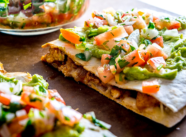I make quick versions of these Chicken Guac Quesadillas all the time. I also usually put freshly made Pico de Gallo inside the quesadillas and that gives them a light, vibrant flavor.