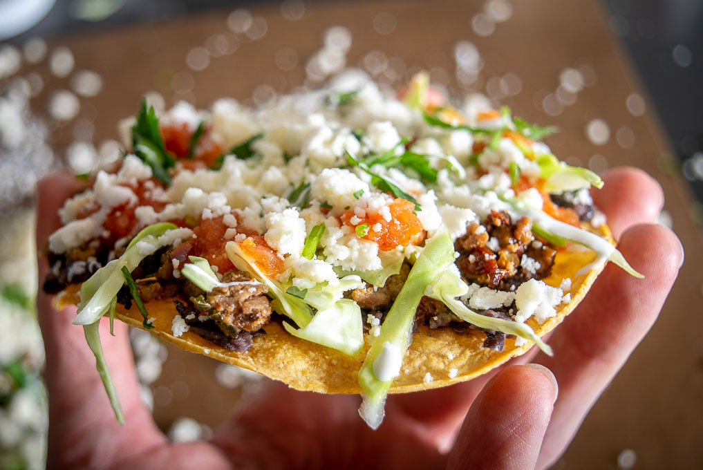 I get tons of mileage from these Ground Beef Tostadas! They’re a real treat when served over a thin layer of refried beans — add in a freshly made Salsa and all is well for a few bites 🙂