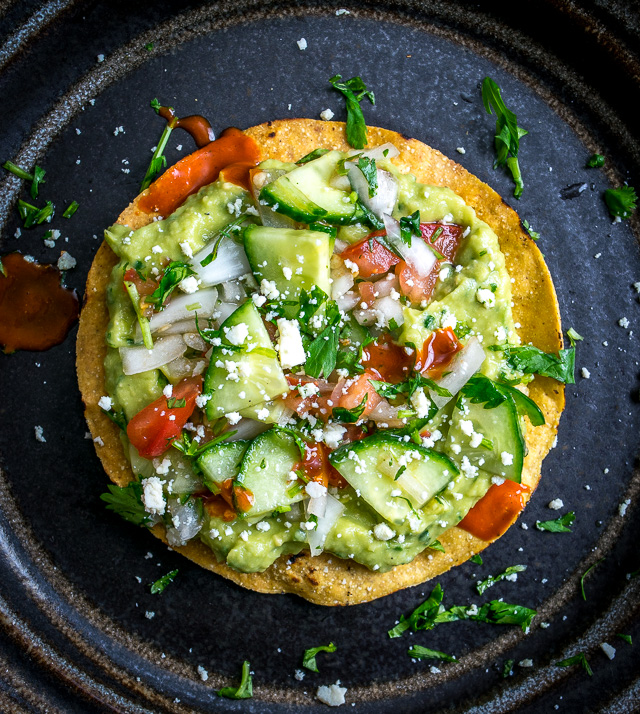 For example, you can whip up a simple chicken tostada, but when you drench it in freshly made Salsa de Aguacate it really comes alive!  Feel free to get creative with your Tostada fixings, but the awesome green sauce is non-negotiable ๐Ÿ™‚