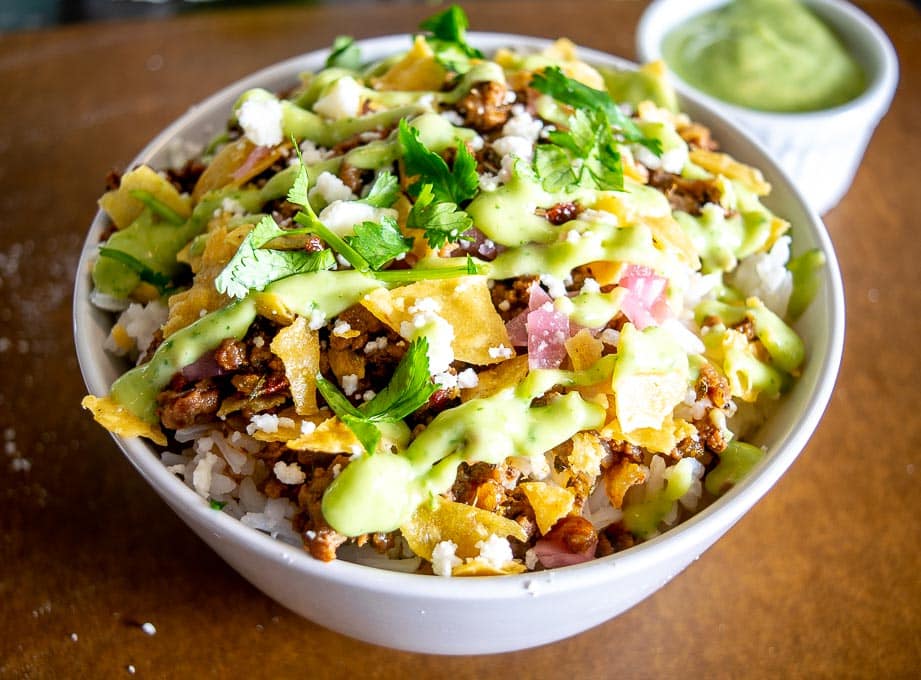 The Salsa de Aguacate also pairs well with beef.  Here I’m using a chipotle infused ground beef to make some quick bowls.  They are ultra-satisfying and also quite flexible, so feel free to build them as you see fit.
