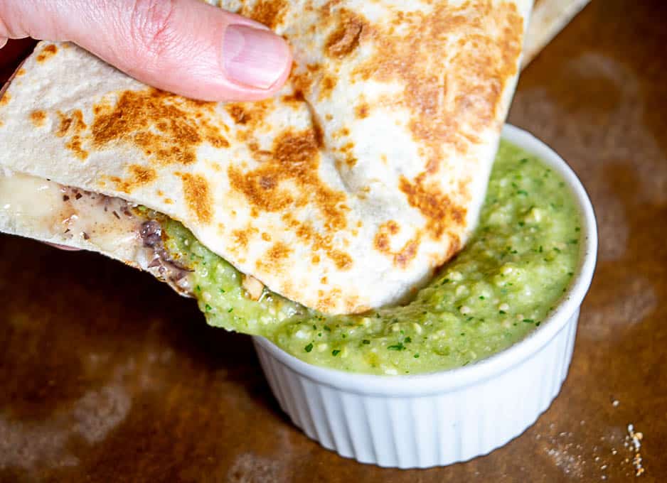 Quesadillas Dipped in Avocado Salsa Verde