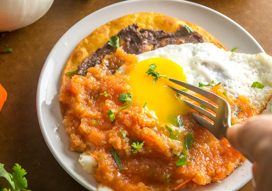 Update: here’s the latest addition to the site….Breakfast Tostadas! If you start with a warm tostada shell and a layer of refried beans then the possibilities are endless. Yum 🙂