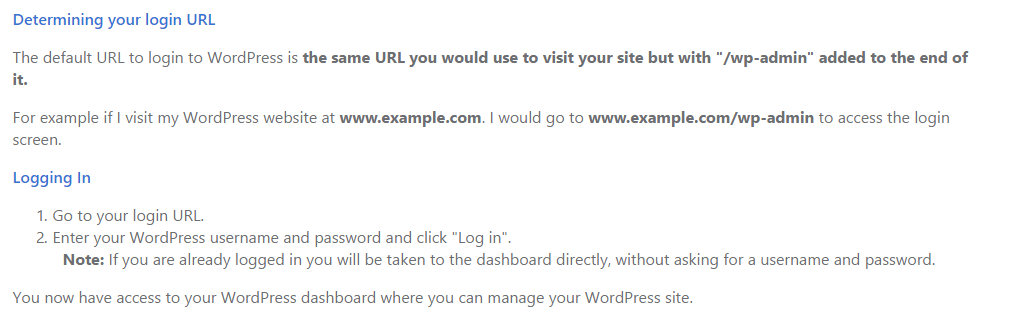 To log into your WordPress dashboard navigate to your admin url.  This is your site name plus /wp-admin.  So for our brand new site it is startmyfoodblog.com/wp-admin.