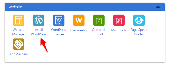 Next, log into your Bluehost cpanel account here.  Scroll down until you find the website section and click Install WordPress.