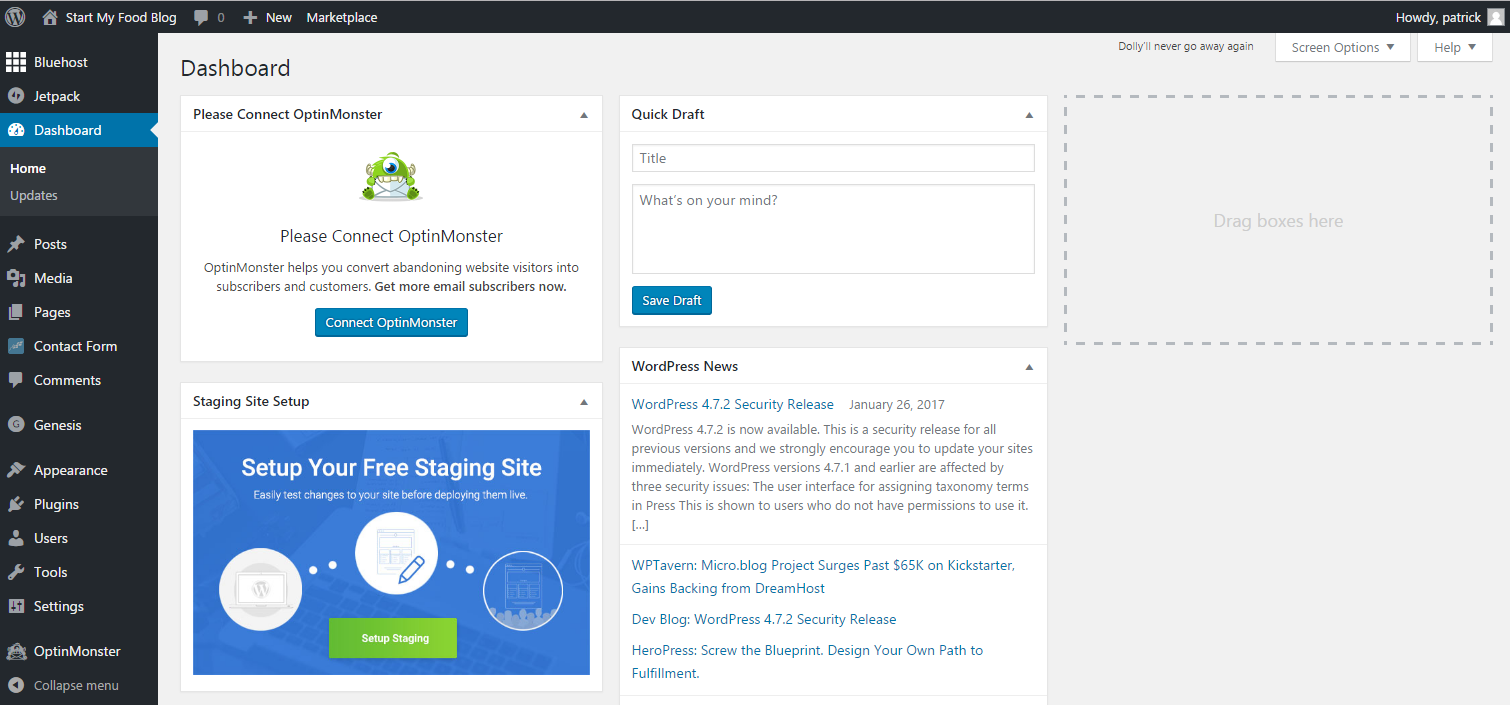 Are you in?!!   Welcome to your site’s WordPress dashboard!