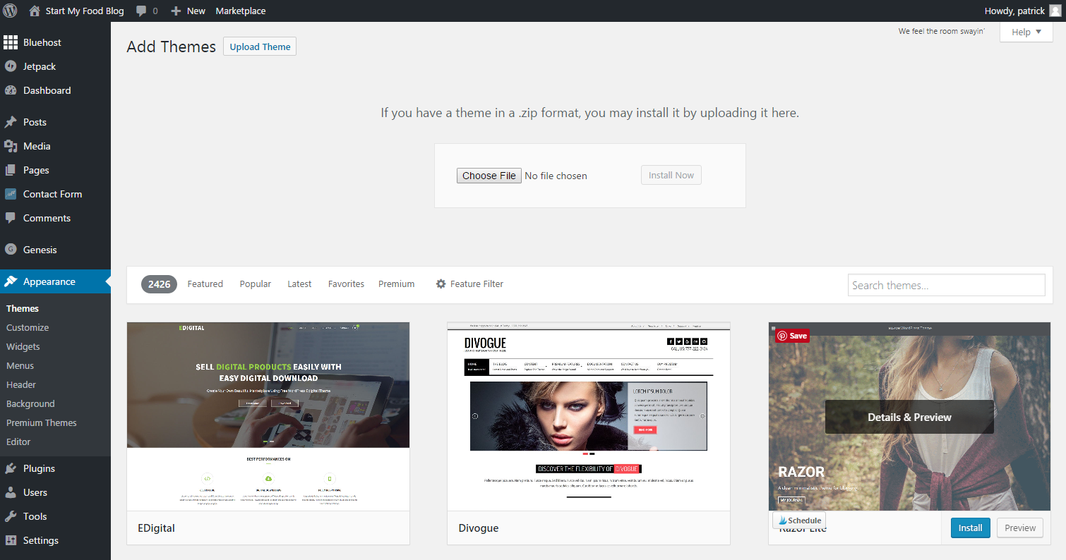 A bit lackluster, eh?  Luckily, you’ve got plenty of choices to jazz up your site and the good news is that themes are a reasonable one-time fee, unlike the monthly/annual charges required by domains and hosting plans.