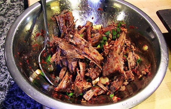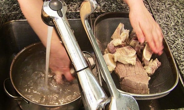 - Rinse and drain the meat in cold water to remove the excess fat.